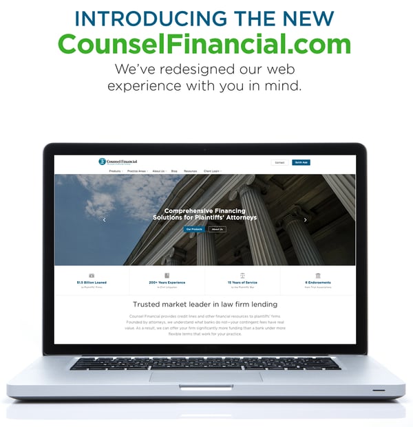 Counsel Financial, the largest law firm financing company, announced today the launch of its newly redesigned
